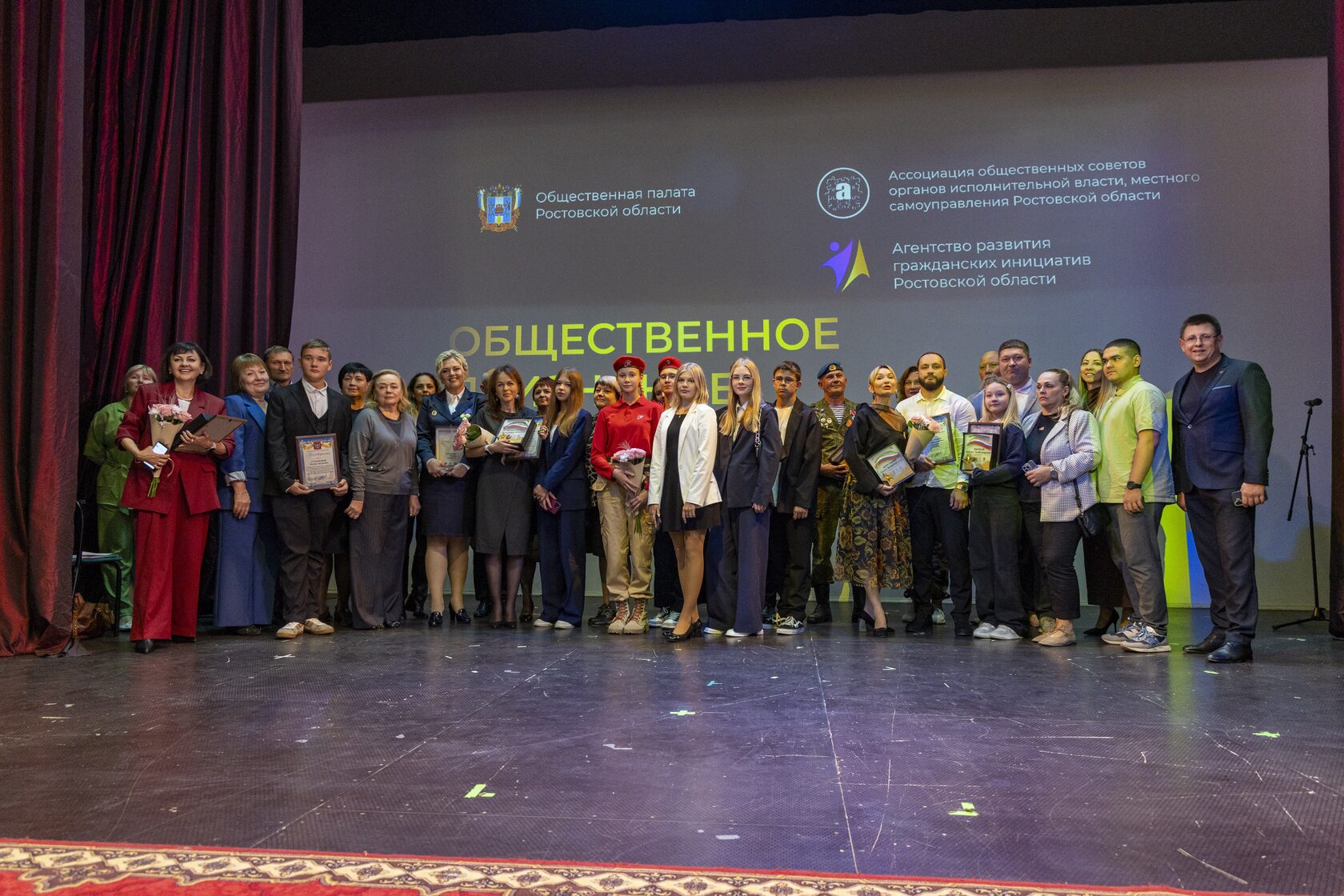 Торжественная церемония награждения лауреатов XII конкурса «Общественное признание» в номинации «Новые вызовы воспитания. Патриотизм» на Камерной сцене Ростовского государственного музыкального театра.